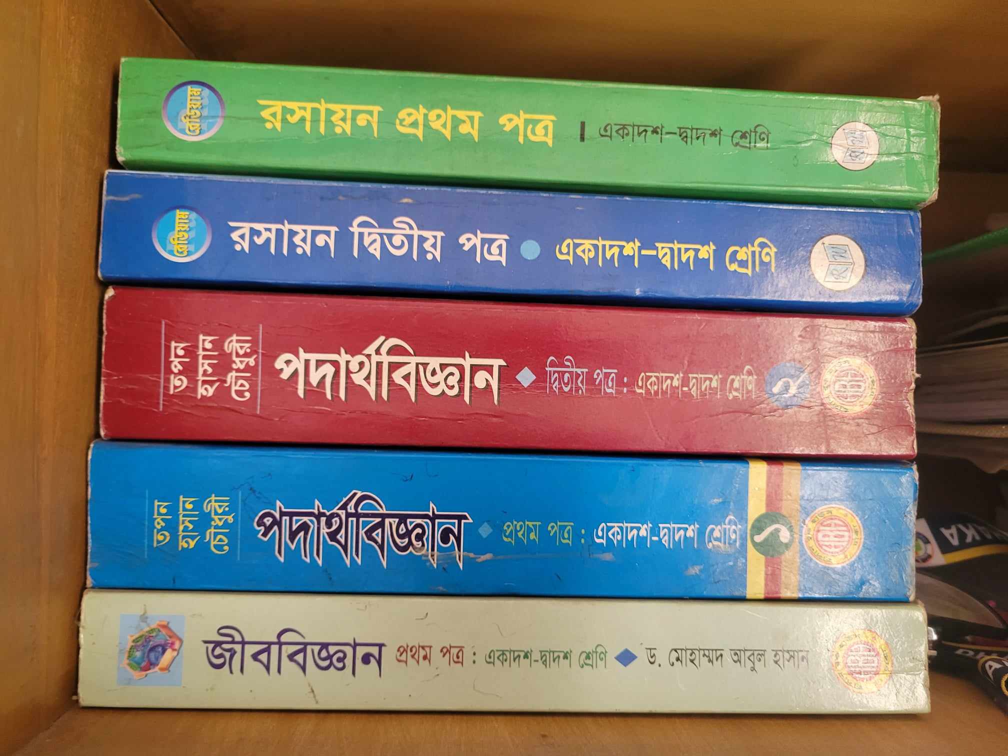 Class 11-12 er biology 1st paper dr. Md abul hasan, physics 1st-2nd paper topon hasan chowdhury, chemistry radium 1st 2nd paper.